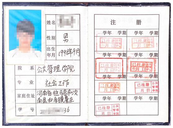 郑州大学本科学生证个人信息页照片和注册页照片。务必确保边框完整,字迹清晰可见,亮度均匀。