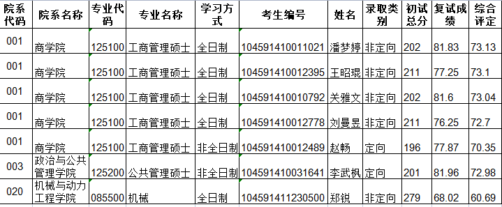 同时补充拟录取以下7名考生,最终录取结果以我校政审调档及教育部录检结果为准,名单如下: