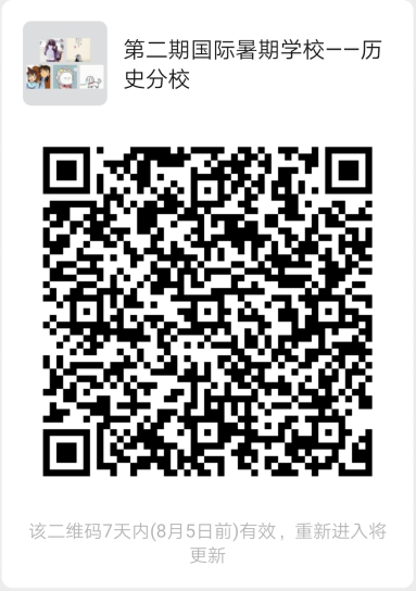 历史学院(中原历史与文化研究院)作为承办单位和文学院、新闻与传播学院、音乐学院、美术学院、书法学院等协办单位拟在2020年7月30日-2020年8月6日举办“2020年第二批郑州大学研究生国际学校——历史分校”。本期研究生国际学校采用线上教学,邀请了法国国家科学研究中心、剑桥大学、奥克兰大学等众多知名高校的专家教授进行全英授课,授课内容涉及全球史、史前考古、数据新闻、中国现当代文学、美国外交政策等诸多领域,欢迎各院系有兴趣的研究生参加本期国际学校。有意参与者请于7月30日之前扫描如下二维码入群进行报名。