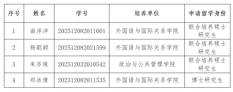 根据国家留学基金管理委员会《关于启动2026年俄罗斯互换奖学金(中俄政府奖学金)遴选工作的通知》和《俄罗斯互换奖学金(中俄政府奖学金)选派指南》等文件精神,我校在全校范围内进行了认真选拔。在选拔过程中,严格遵循“公正、公平、公开”的原则,现将拟推选人员名单公示如下: